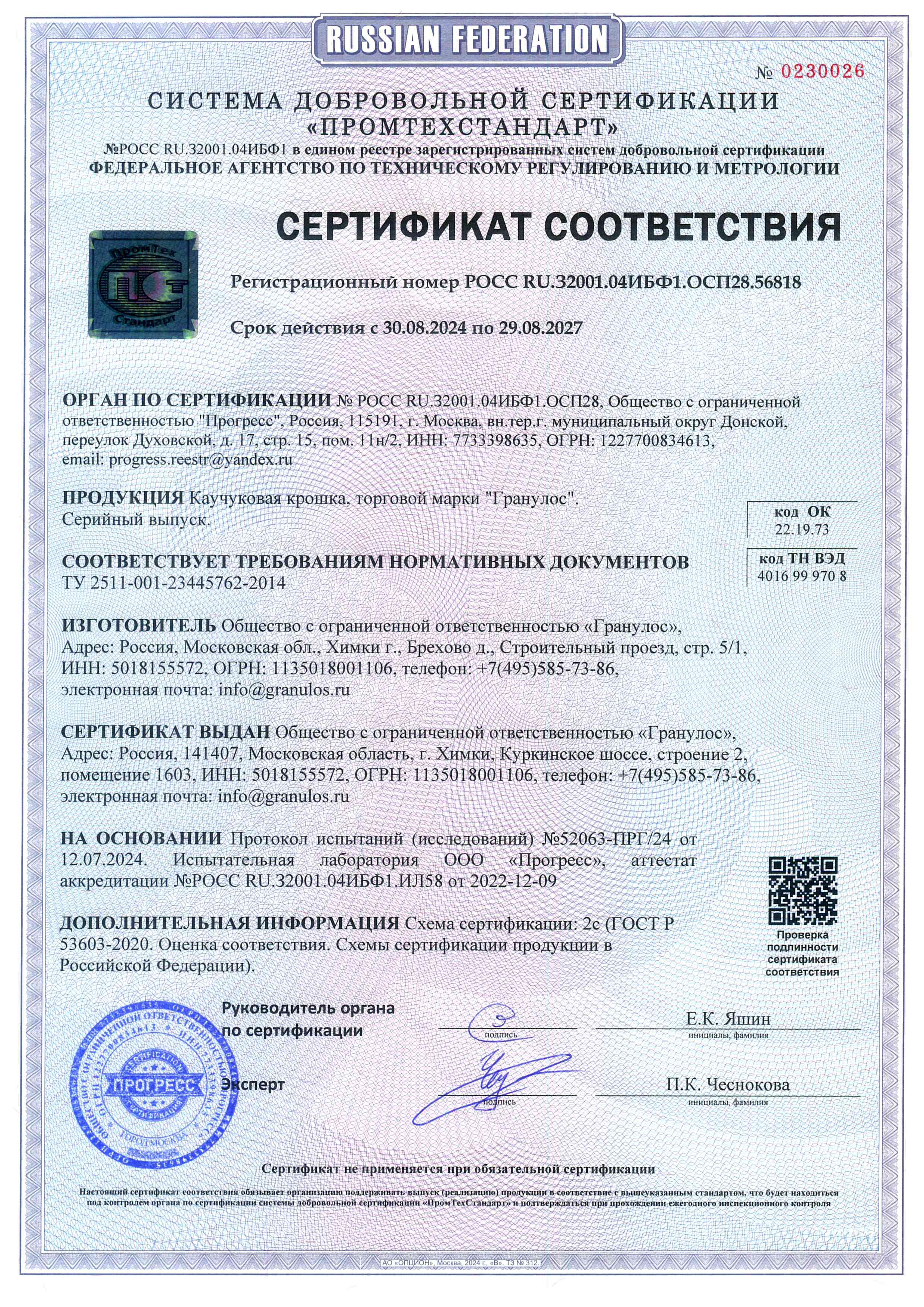 Технические характеристики гранулята:
