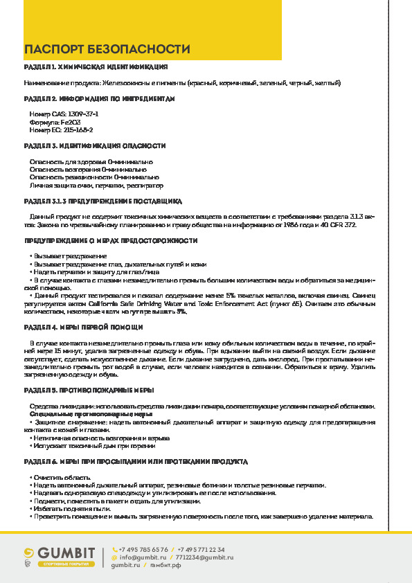 Пигмент неорганический железоокисный желтый для окрашивания резиновой крошки