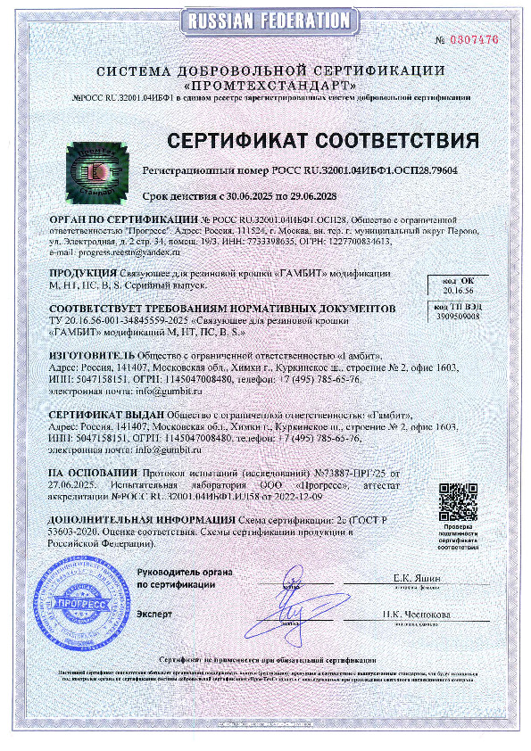 Полиуретановый клей «Гамбит С» — обязательная составляющая покрытия из резиновой крошки. Для получения рабочего состава соединяют резиновую крошку, клей и, при необходимости, пигмент, после чего смешивают компоненты до состояния однородной смеси, которую с помощью валика укладывают в бесшовное покрытие нужной толщины.